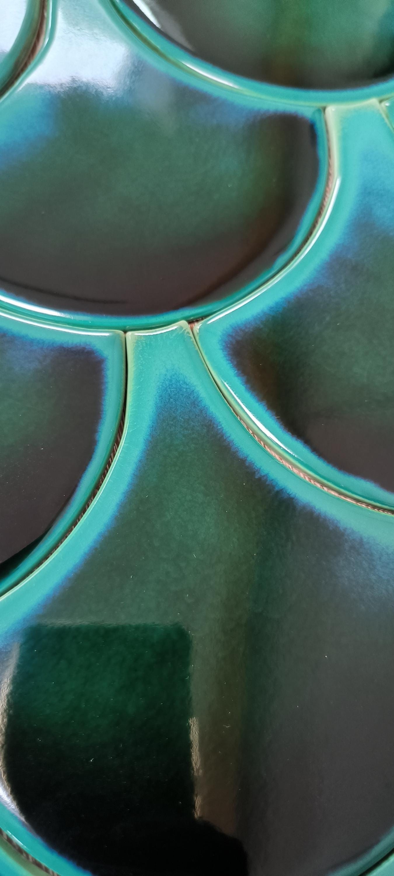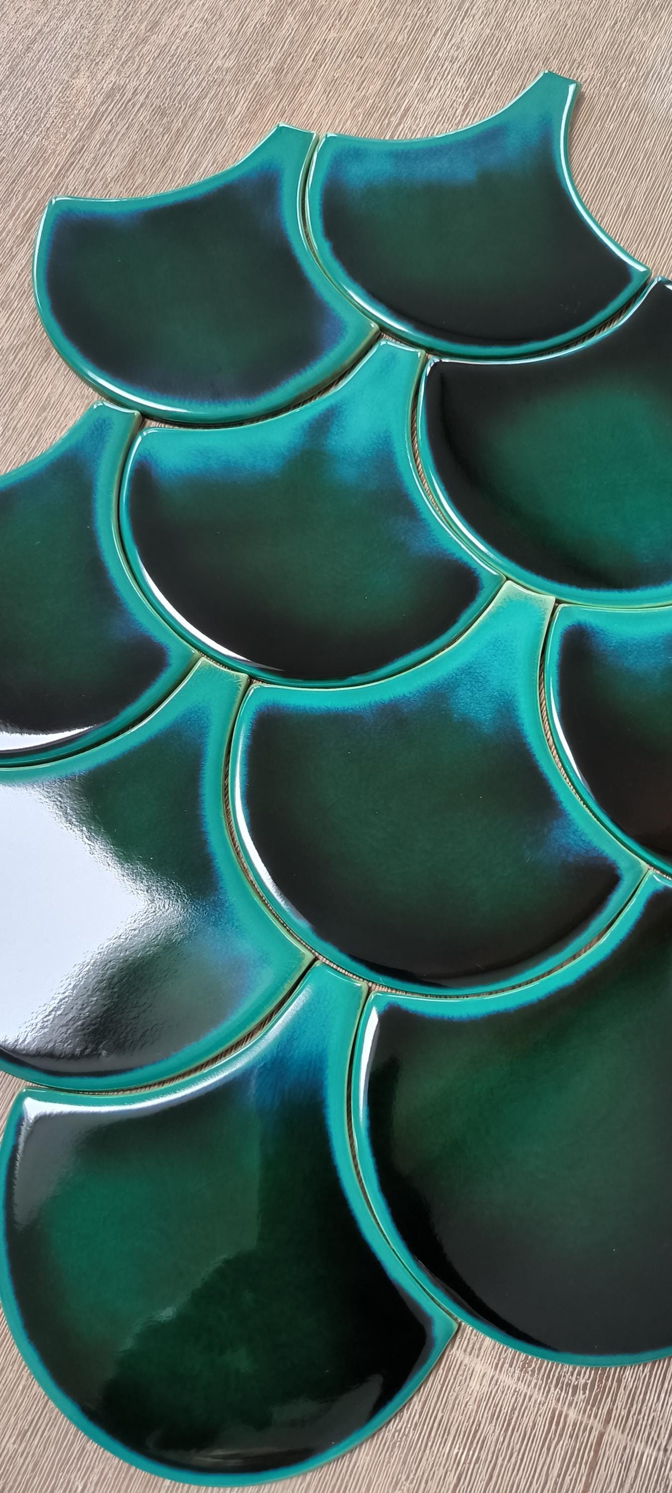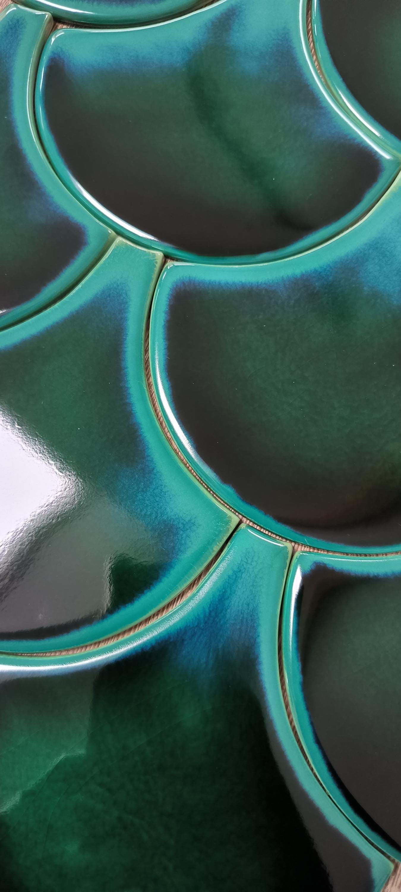 Our newest creation – Dark Emerald Green Fish Scale Tiles – brings the feel of a sunny beach into your home. Imagine warm sand under your feet, tropical waters glittering in the sun, and the gentle rhythm of the ocean. Now, picture those colours and textures captured in ceramic. That’s exactly what our tiles are meant to evoke.