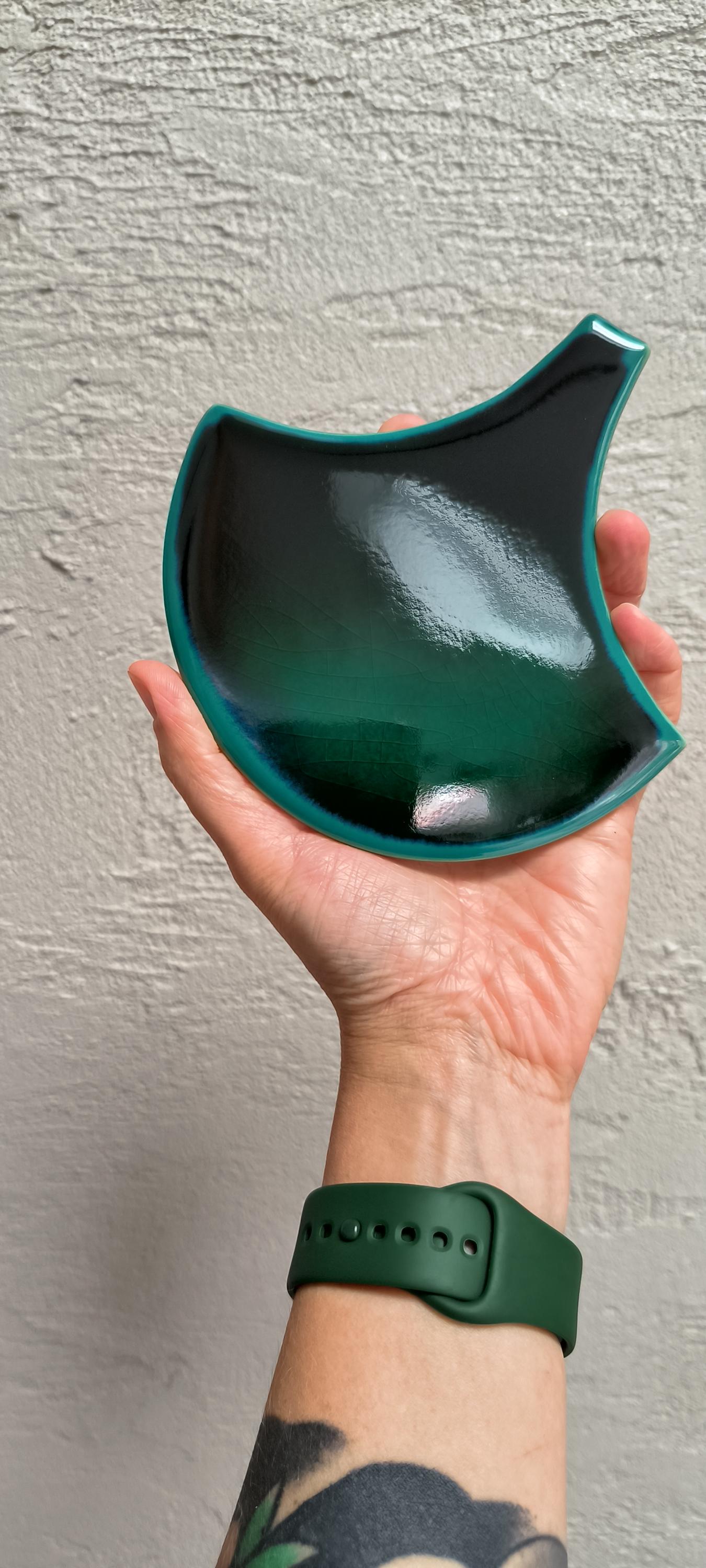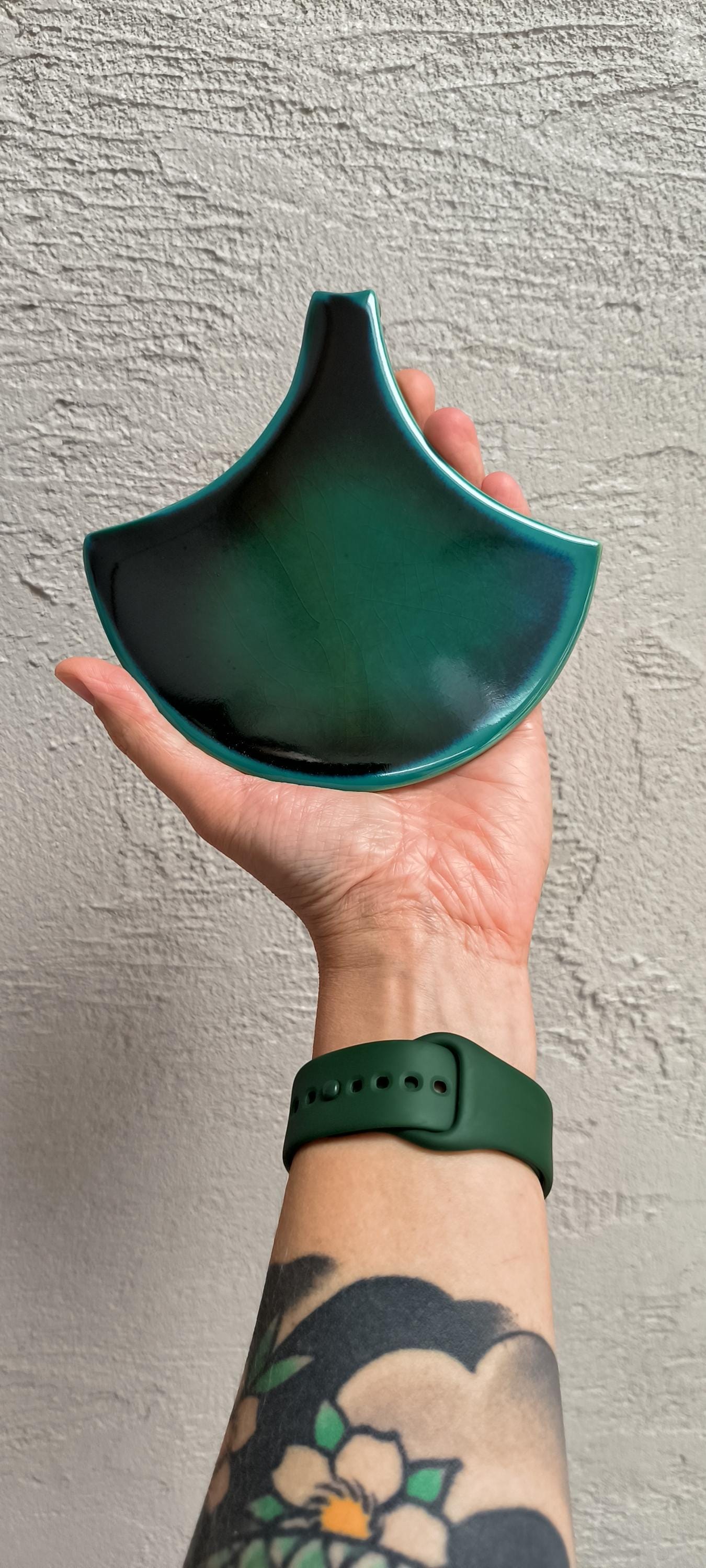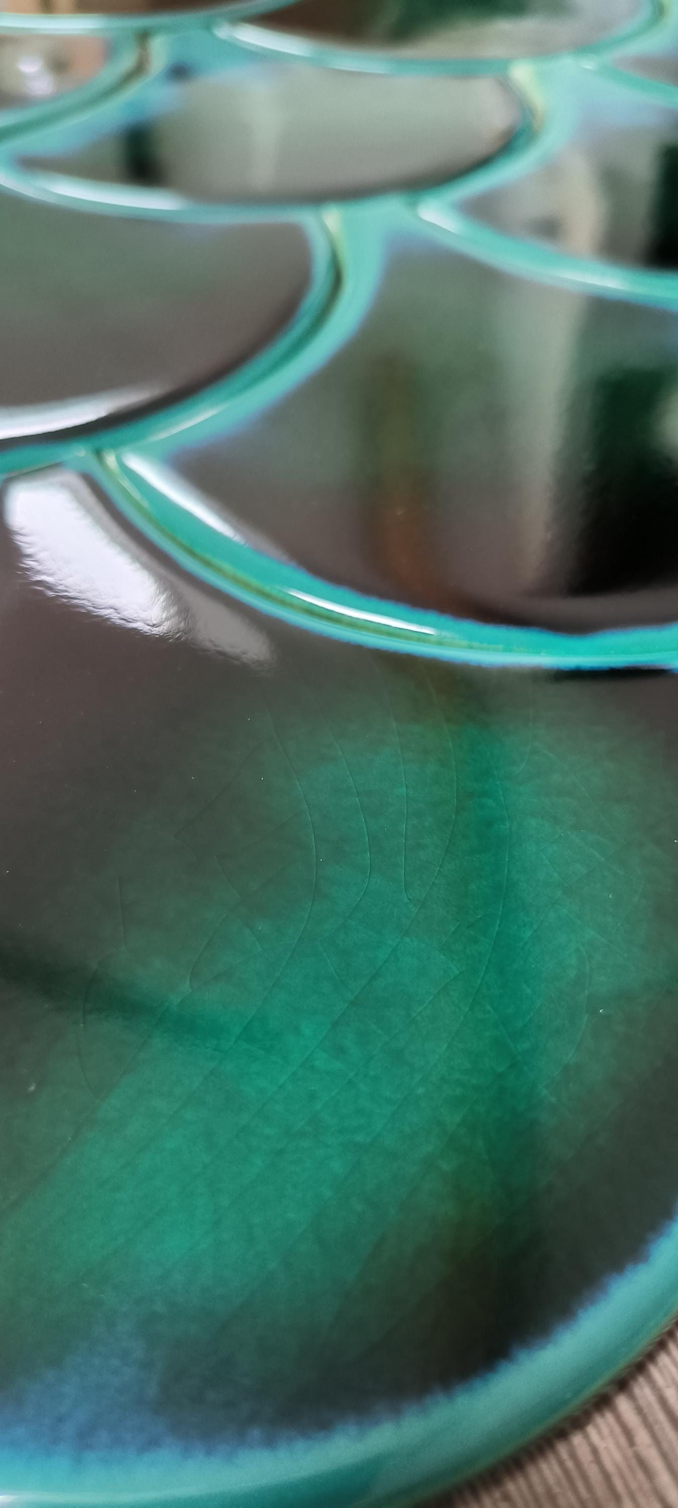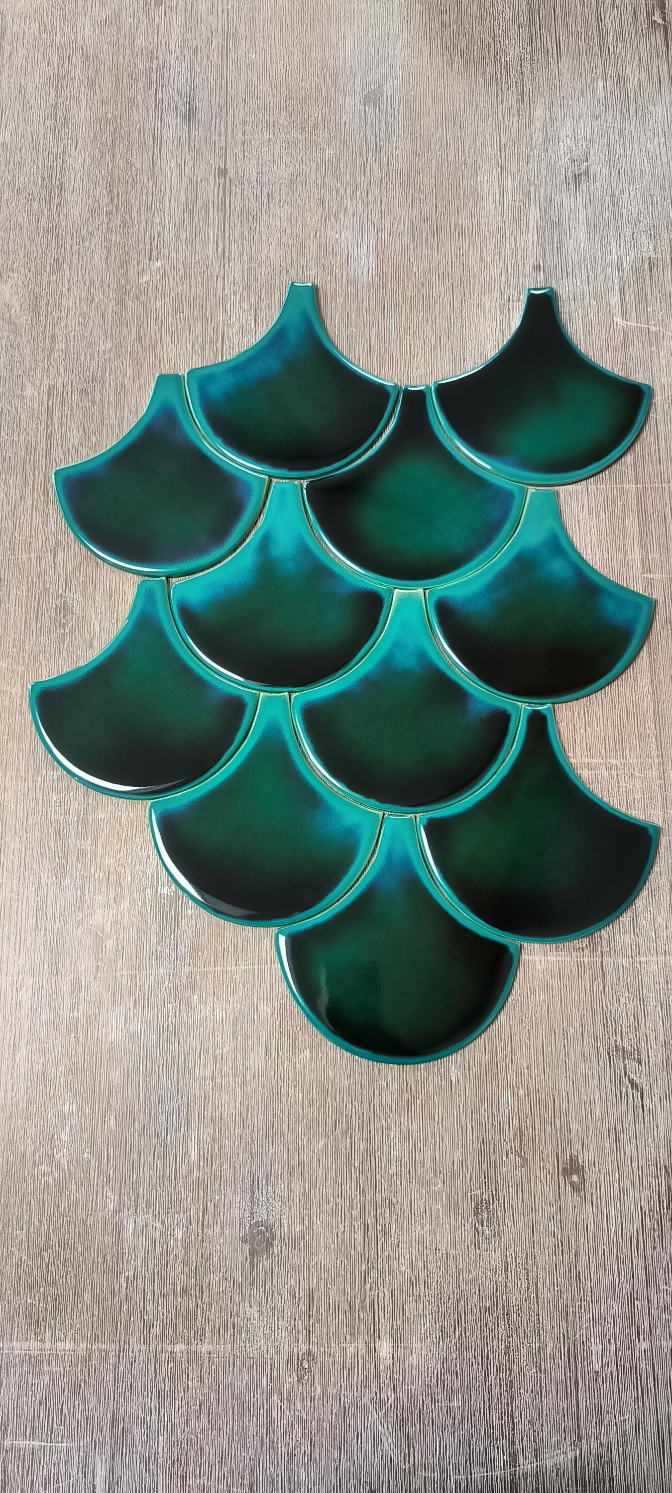 Dark Emerald Green Fish Scale Tile: Handmade Ceramic Mosaic Sample|new collection
