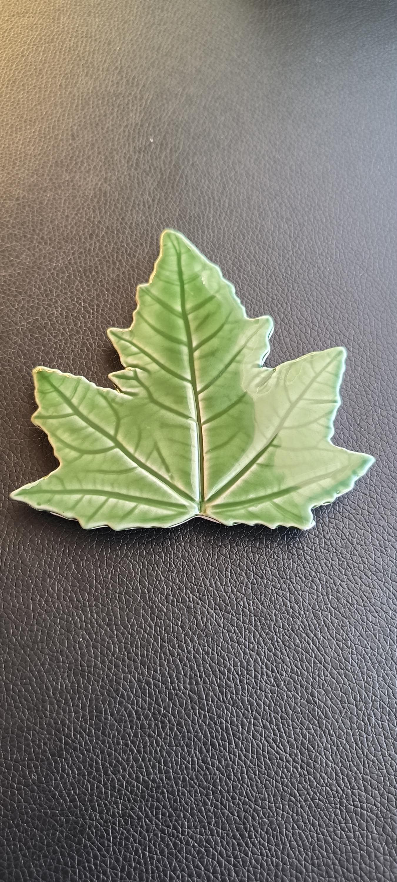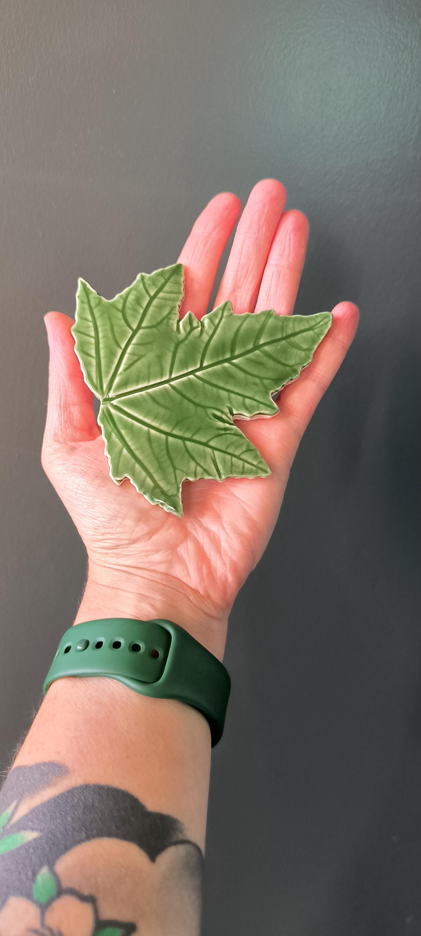 Handmade Green Ceramic Medium Maple Leaf Coaster.