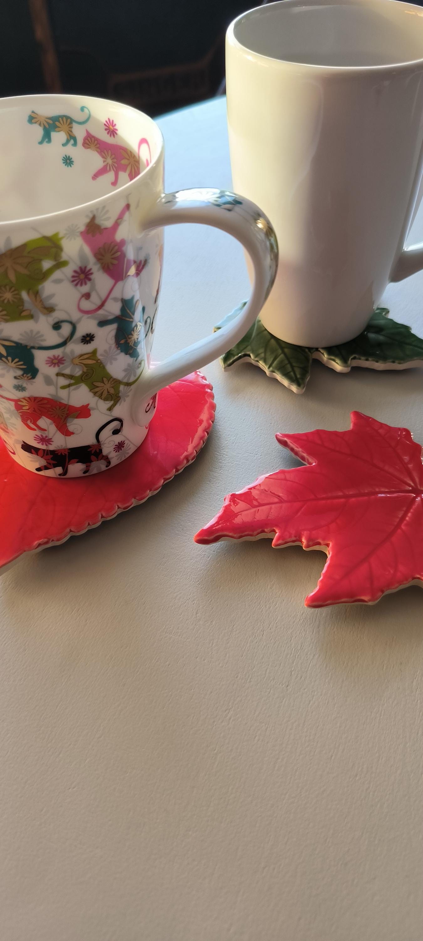Bring natural beauty to your home with these fully handmade ceramic cup coasters, shaped like a detailed maple leaf. Crafted individually in Viola Ceramics Studio from high-quality clay and glazes, each leaf is fired at 1240°C for strength, durability, and a smooth, glossy finish.