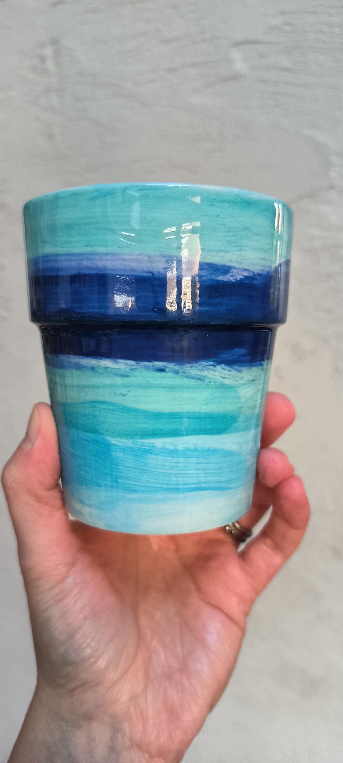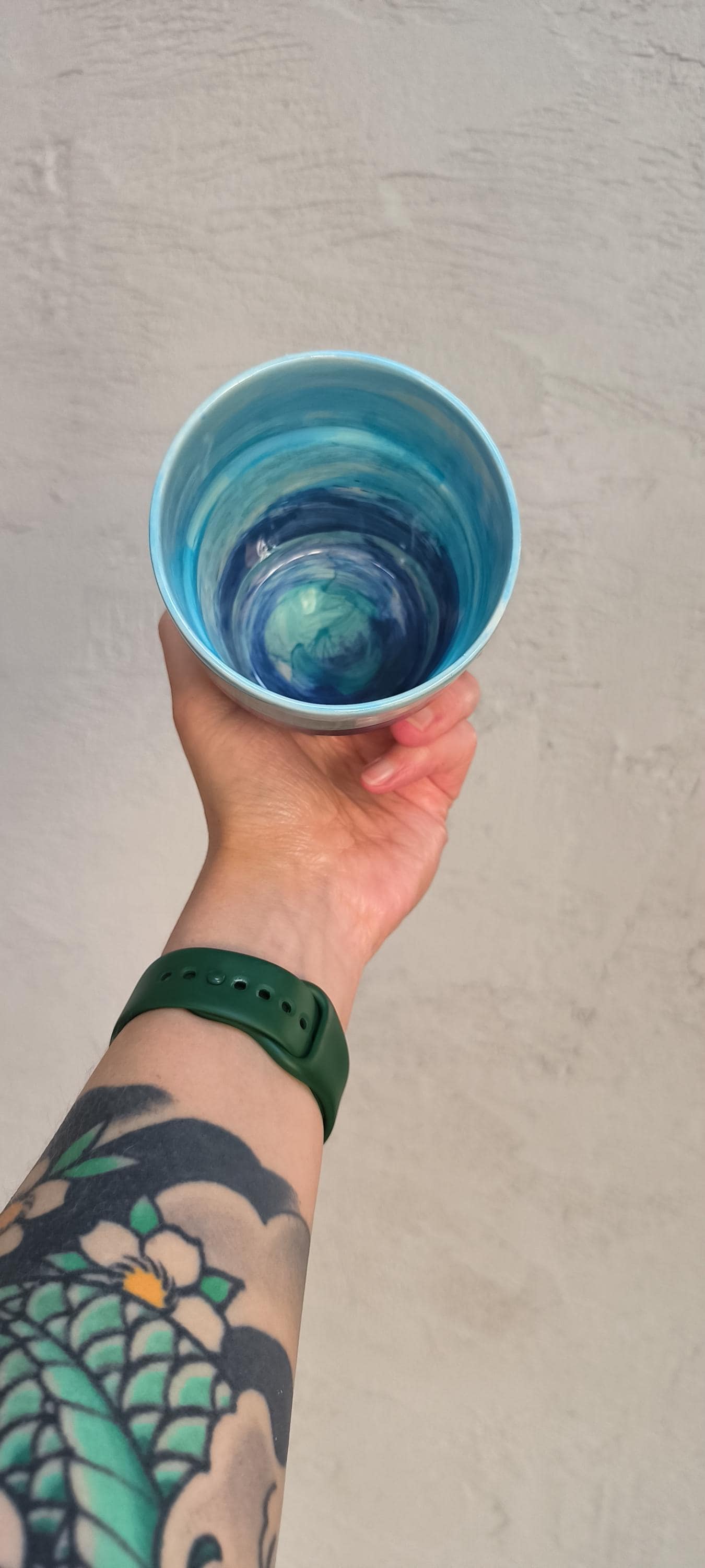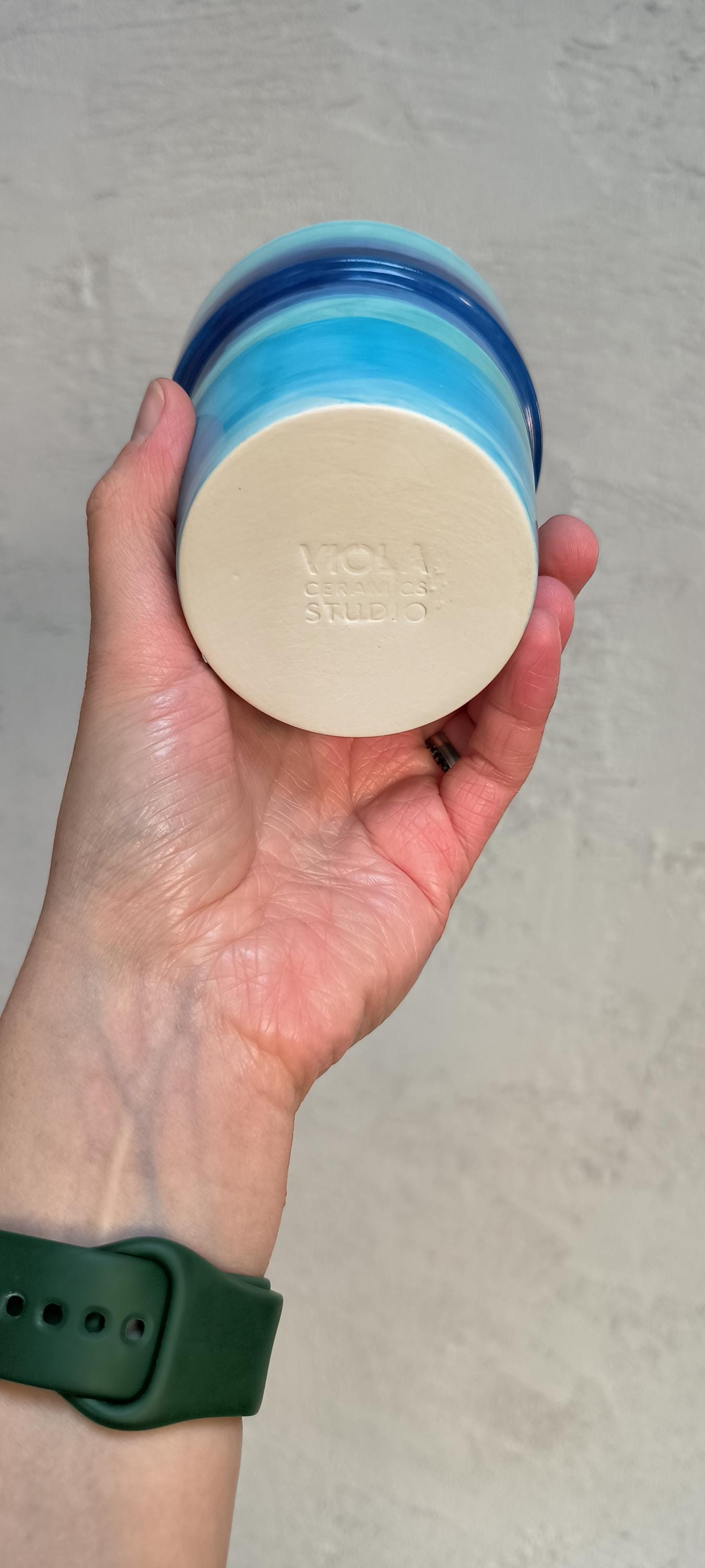 This one-of-a-kind ceramic mug was handcrafted in my studio and inspired by my recent holiday in Sicily — the endless blues of the Mediterranean Sea, sun-washed coastlines, and the calm rhythm of island life.