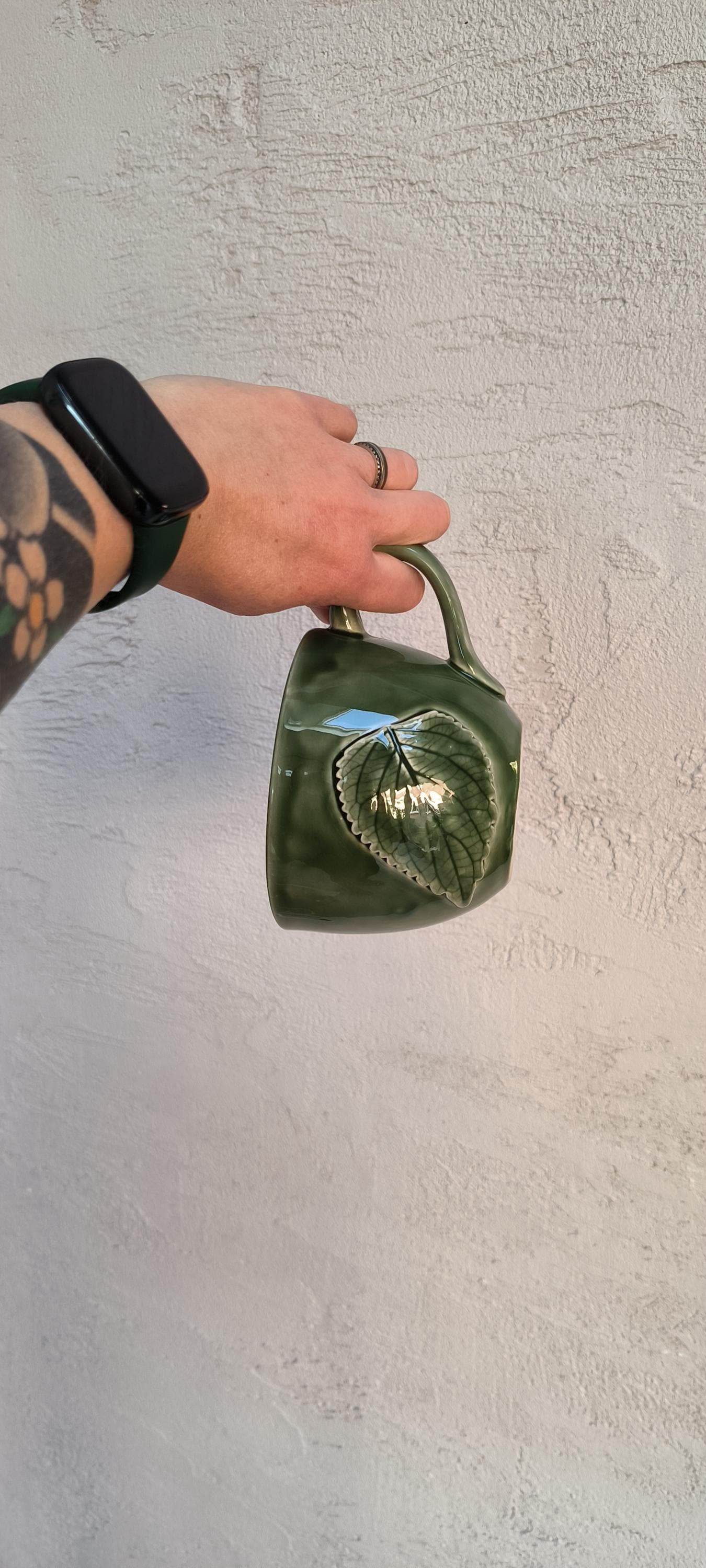 Handmade British Green Ceramic Mug with coleus Leaf – Large 600ml