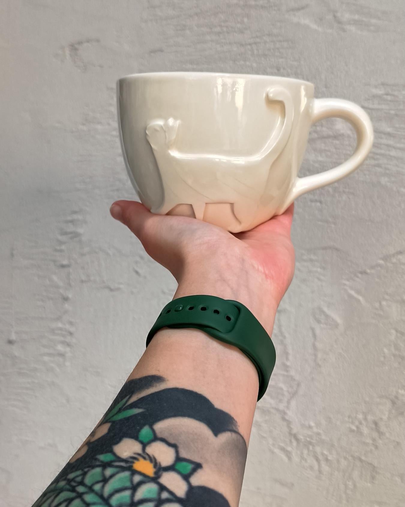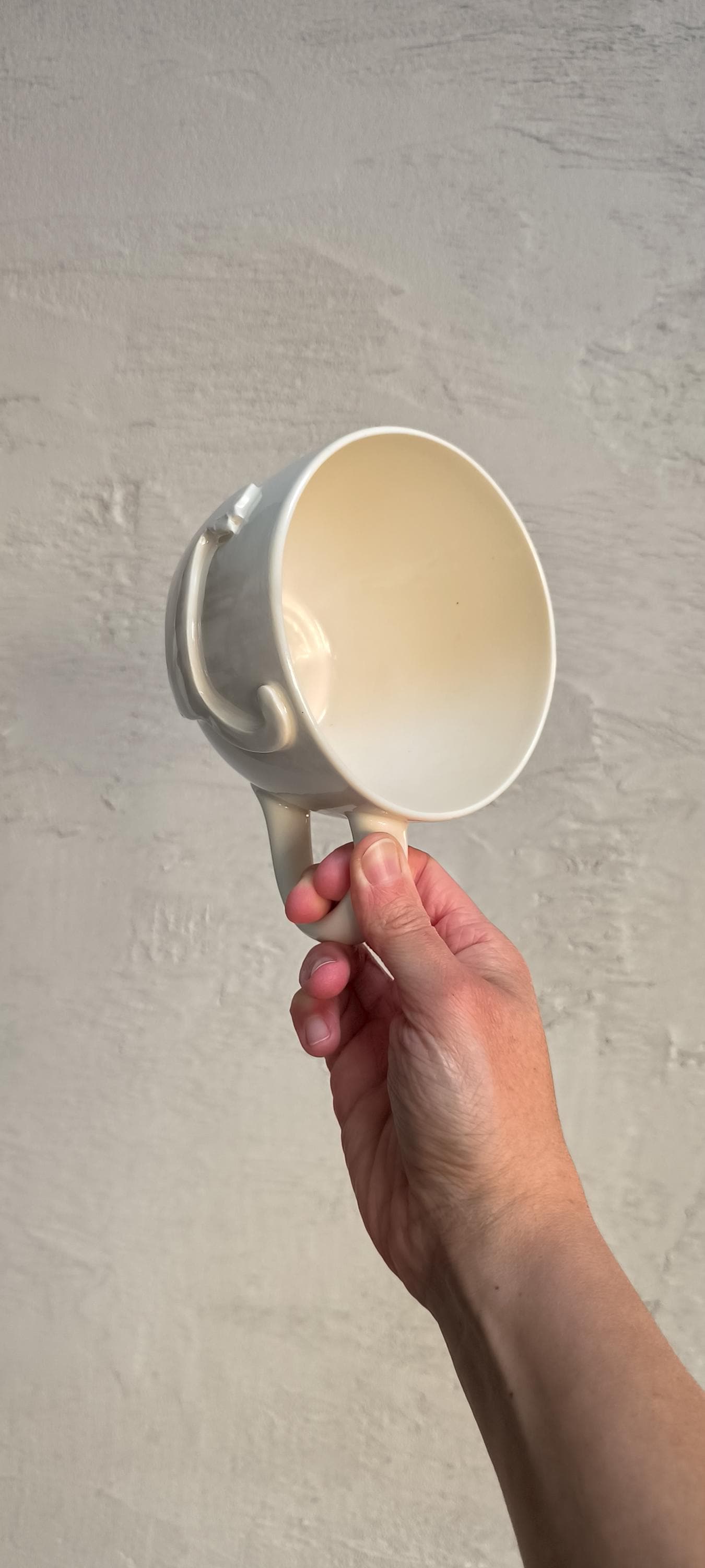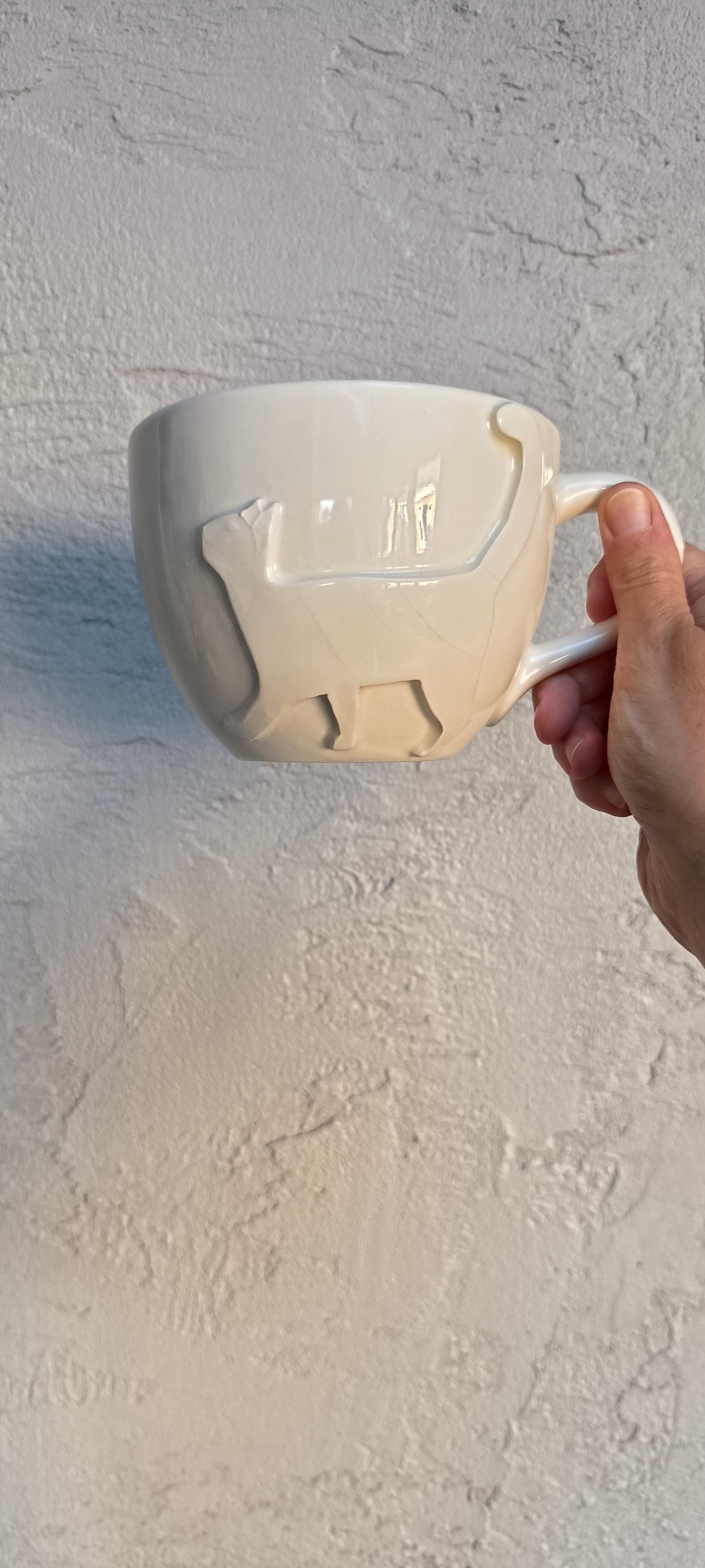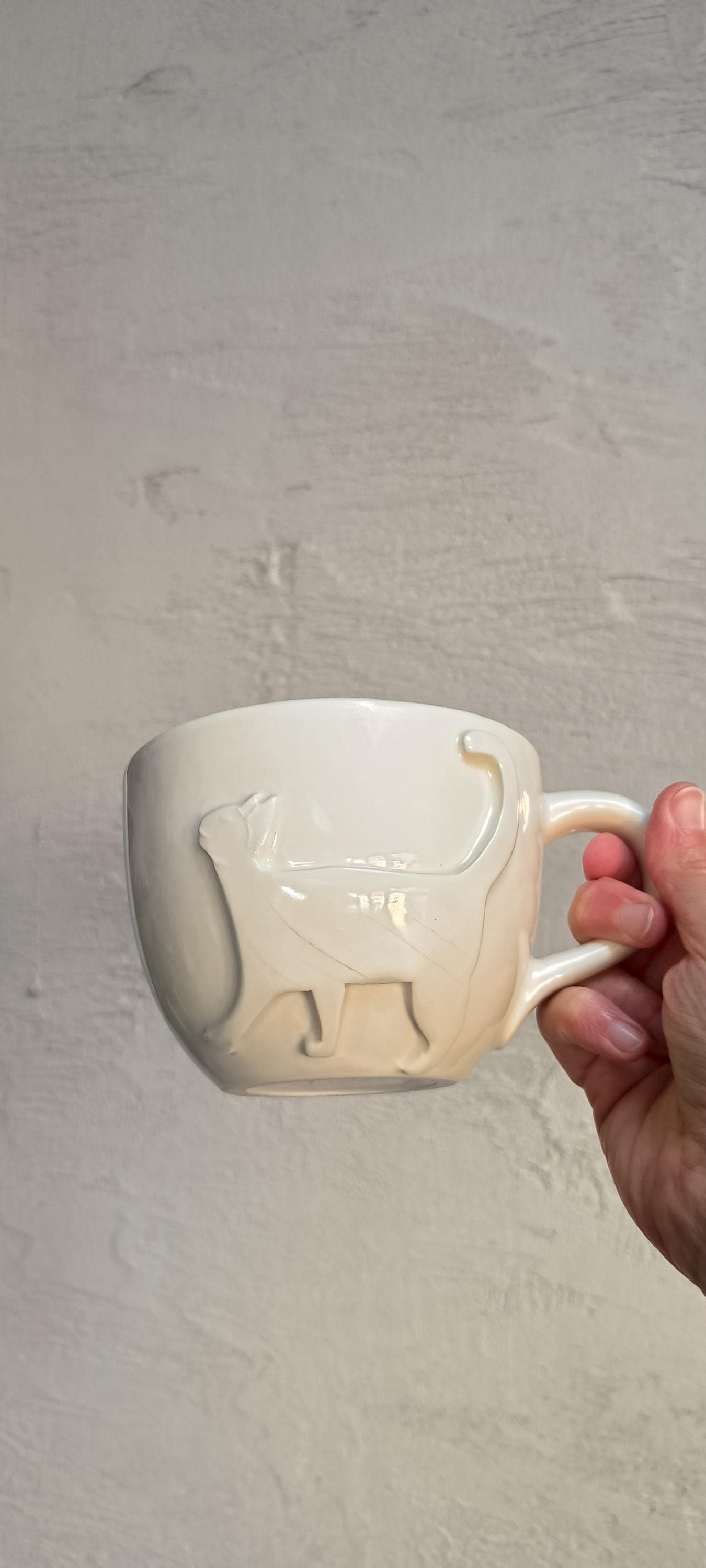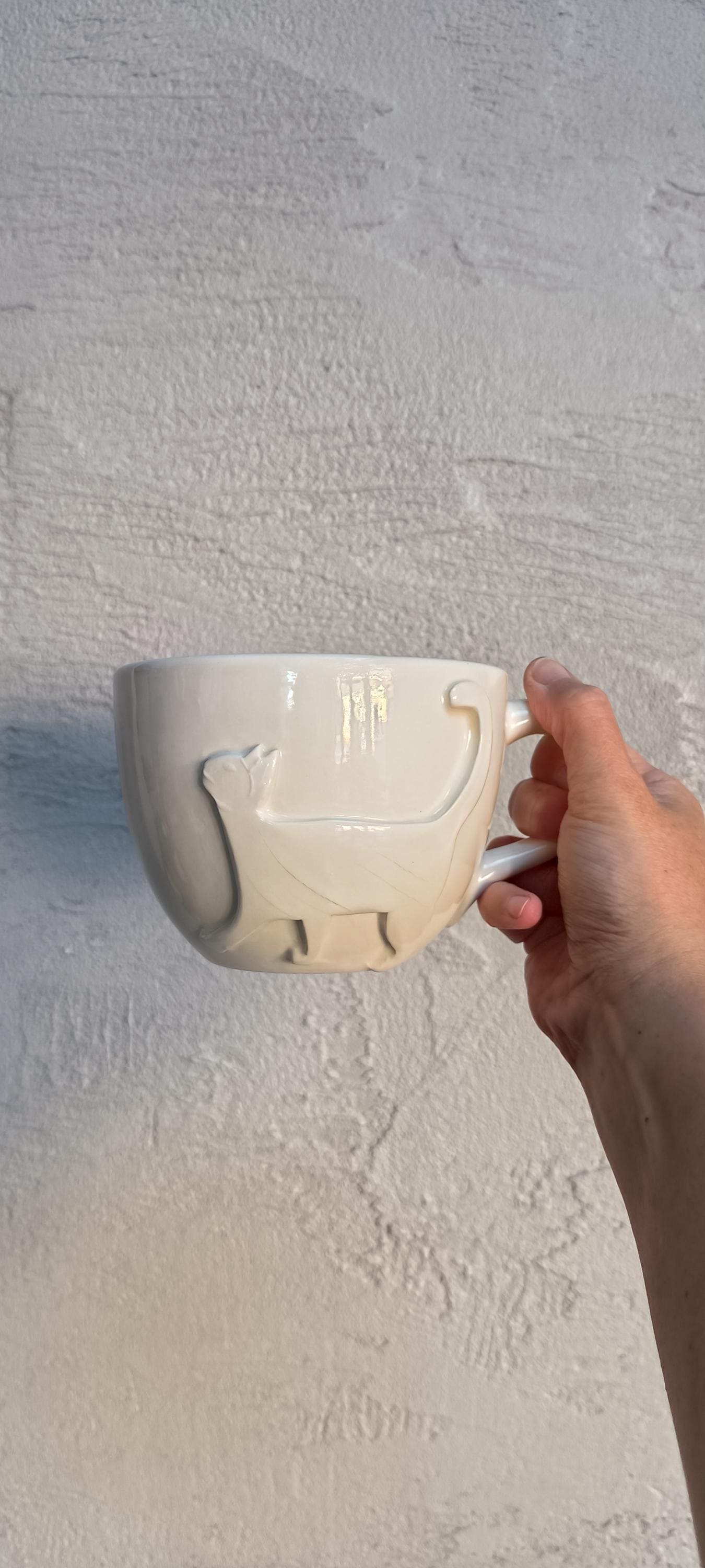 Handmade Cat Mug - 600ml Ceramic Coffee Cup, Glossy Off-White