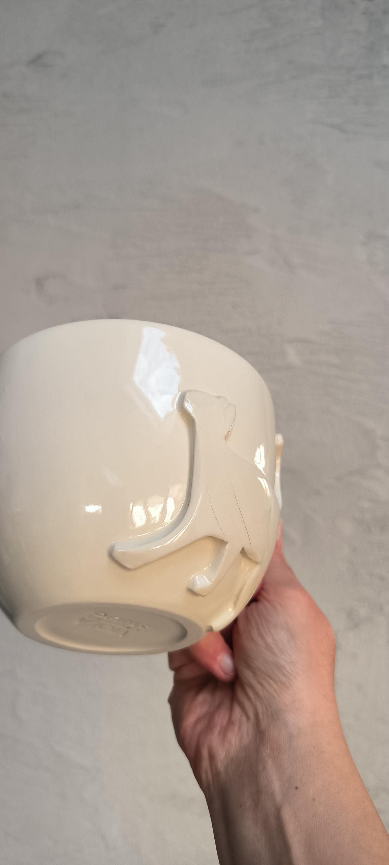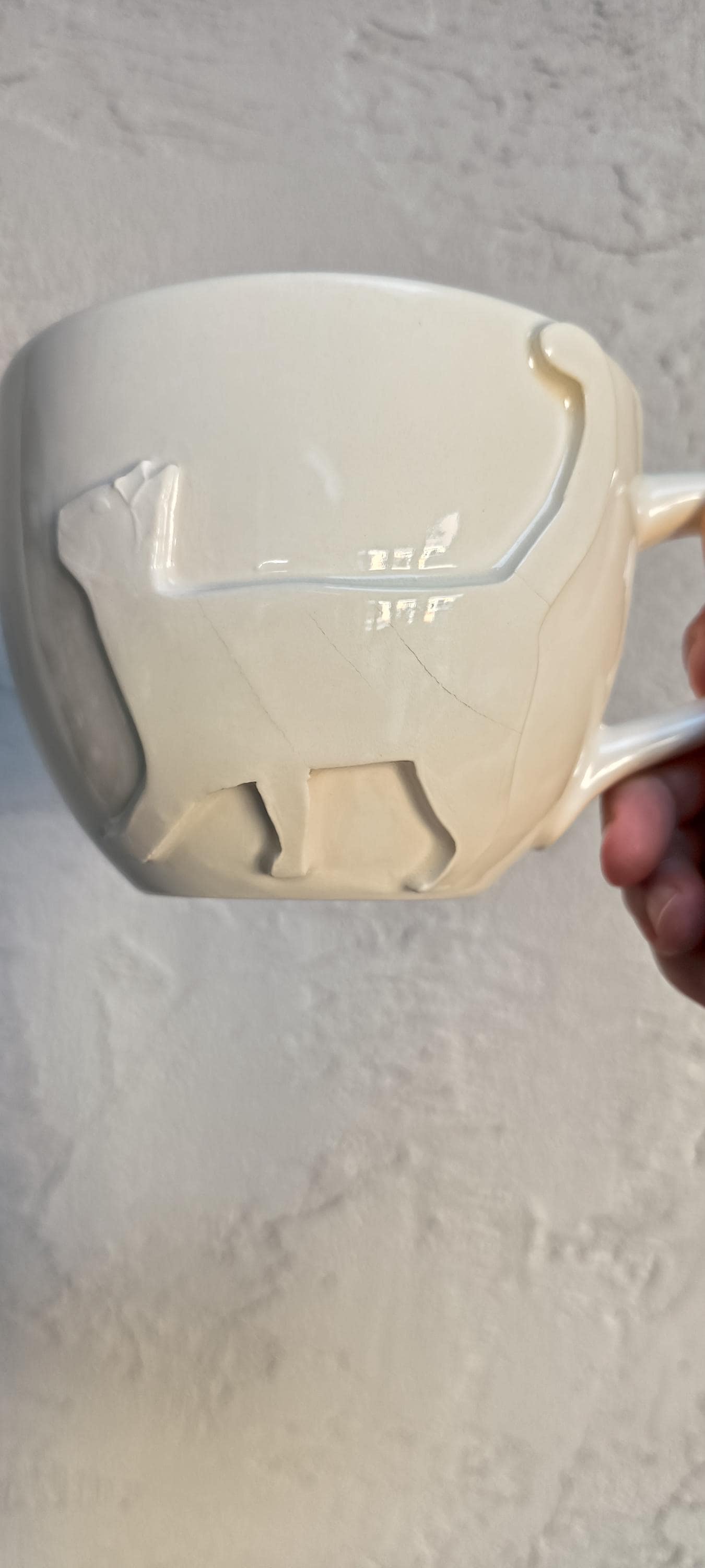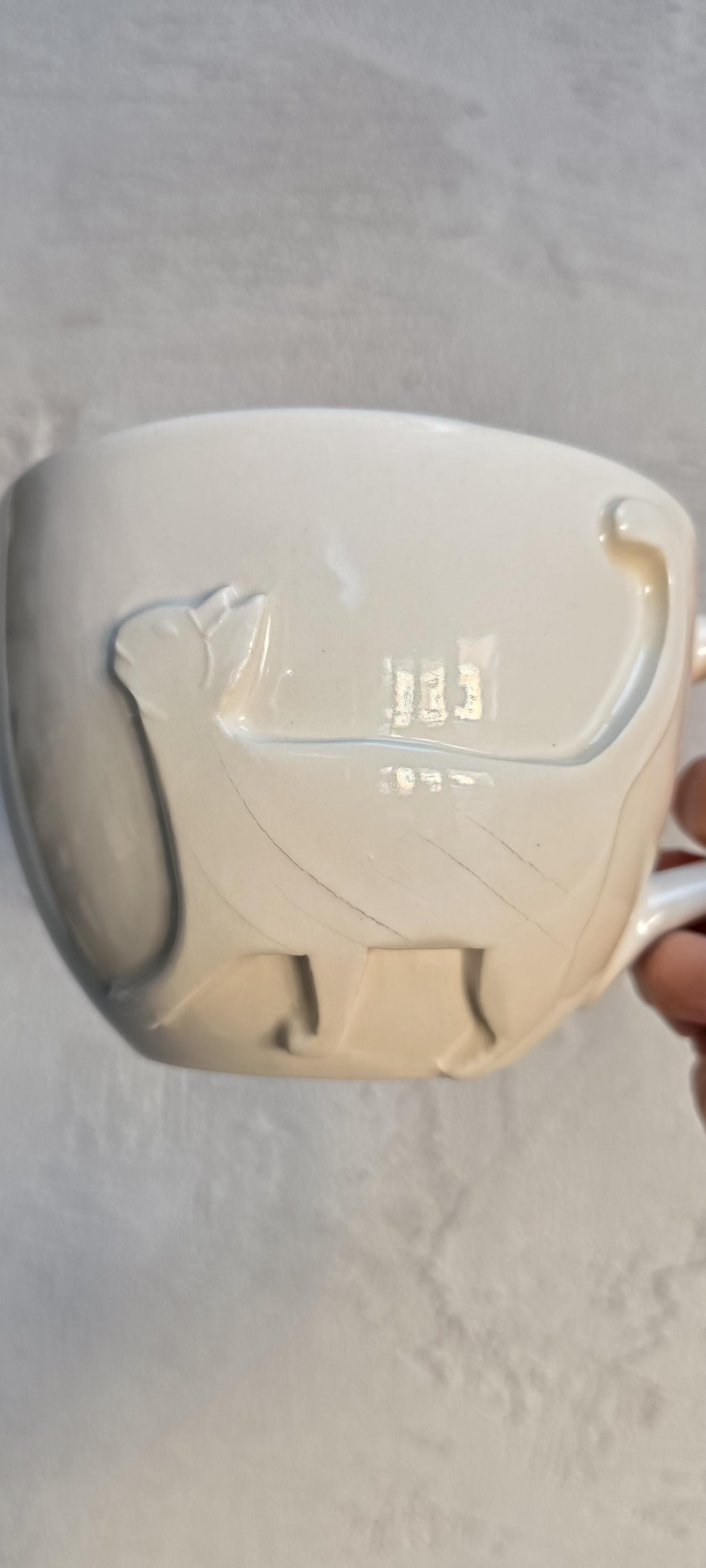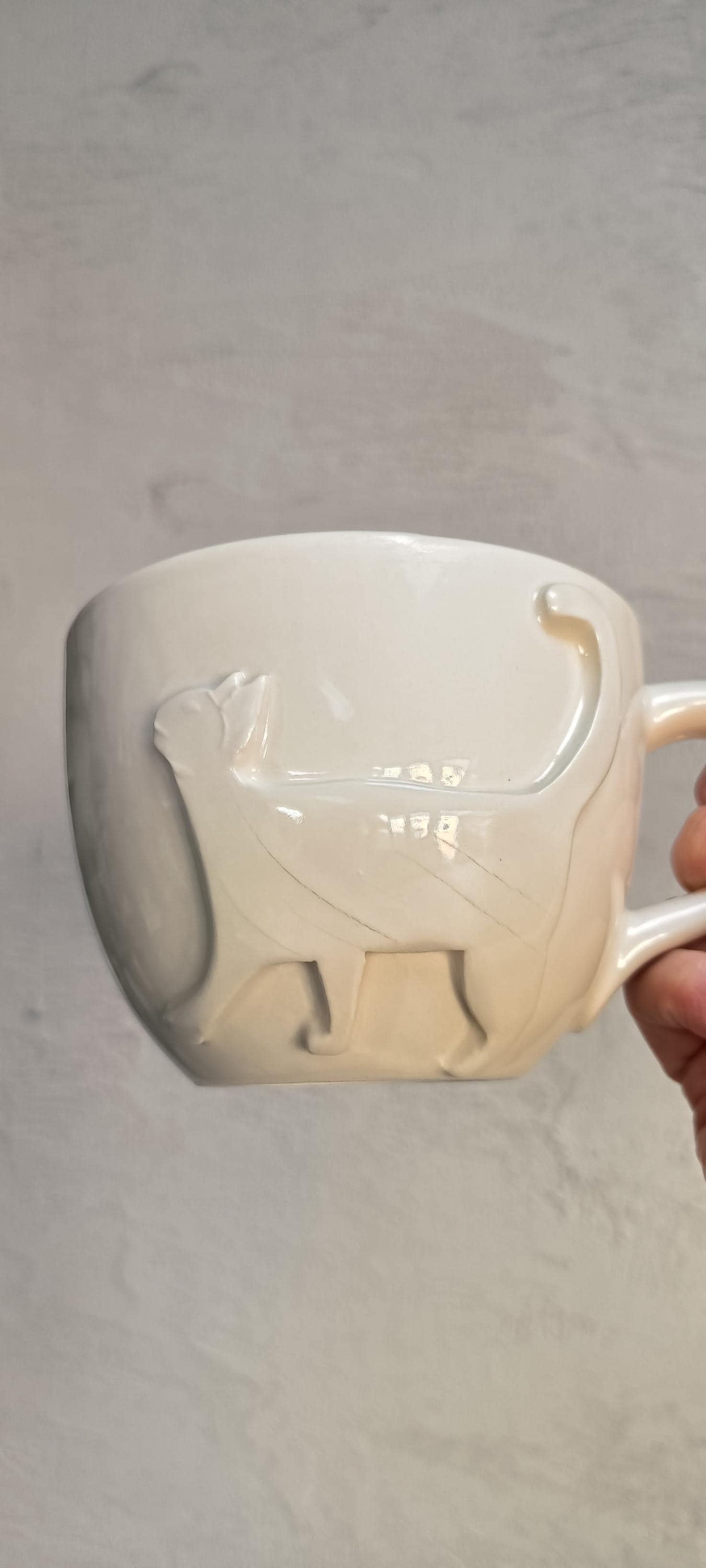 Handmade 600ml Ceramic Mug with Cat Design — Off-White Glossy Glaze (Reduced Price)