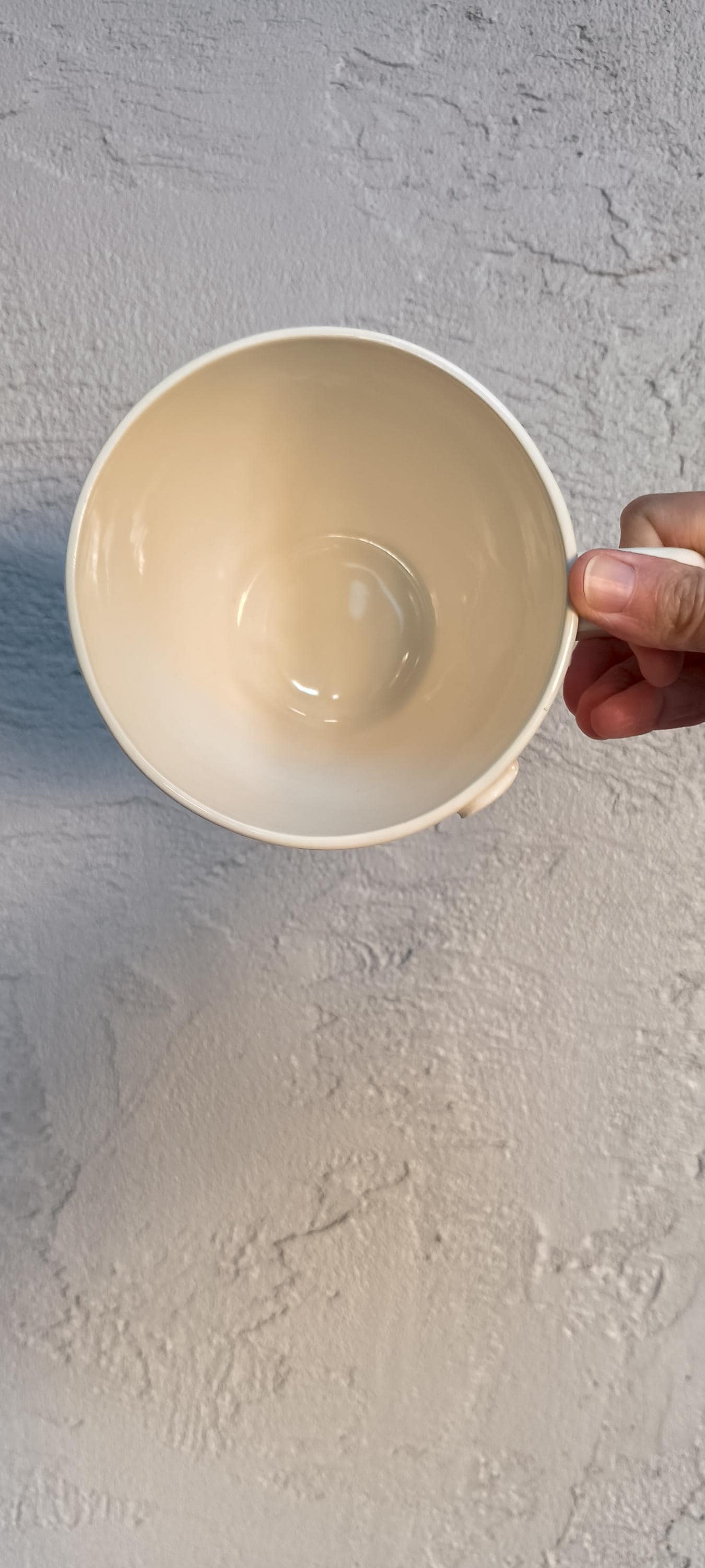Finished in a smooth off-white glossy glaze, the mug has a clean, minimalist look that fits beautifully into any home. Its generous 600ml capacity makes it perfect for big coffees, teas, hot chocolates, or any cosy drink you love.