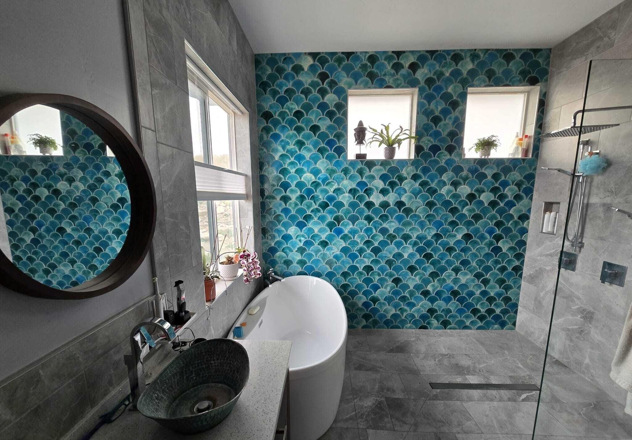 Handmade Ceramic Fish Scale Tiles: Turquoise Crackle & Emerald Green Mosaic