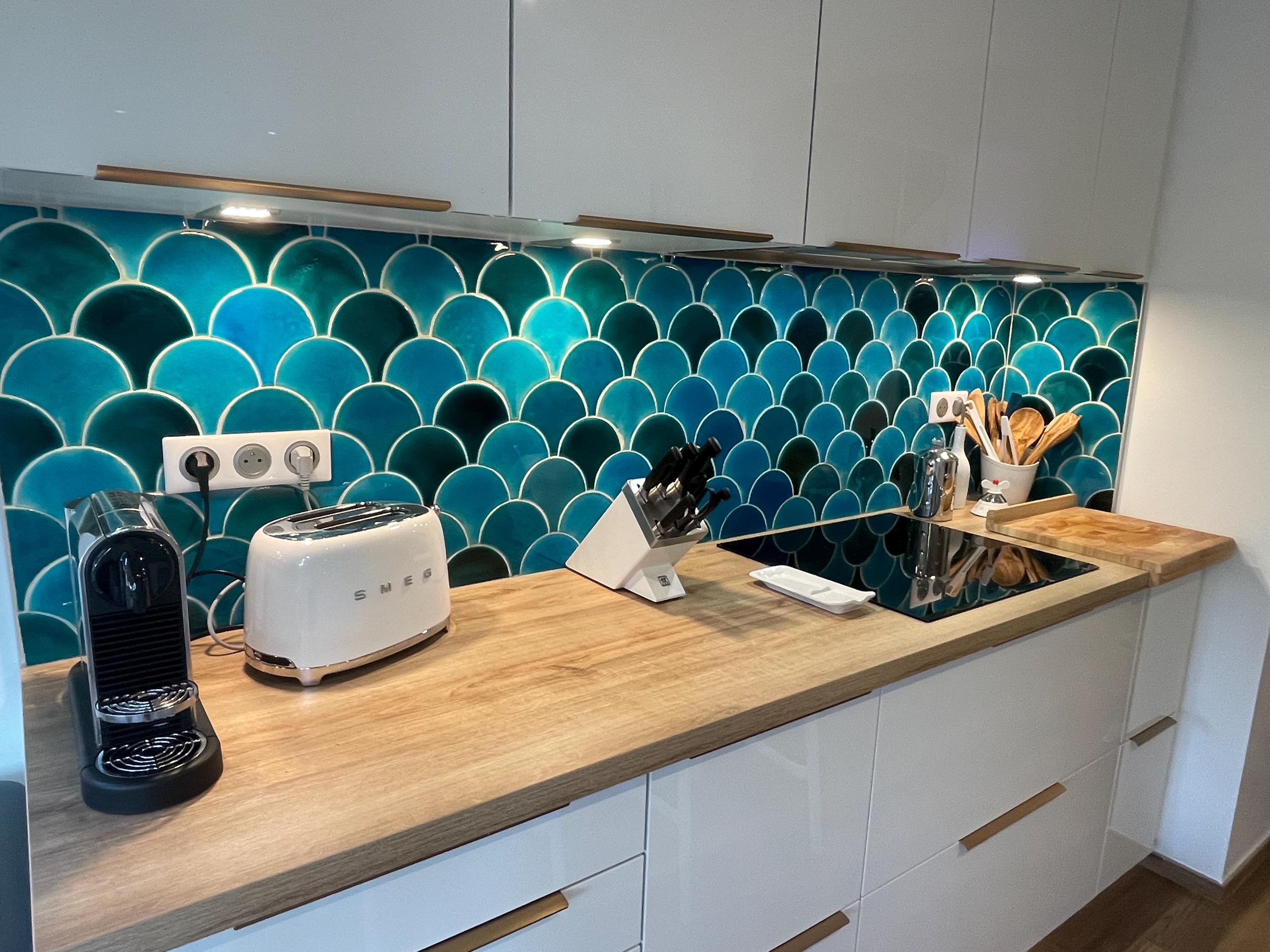 Each tile is individually handmade and glazed, creating natural tonal variations. While the shape remains consistent, every tile is slightly different — this is part of the beauty and character of handcrafted ceramics.