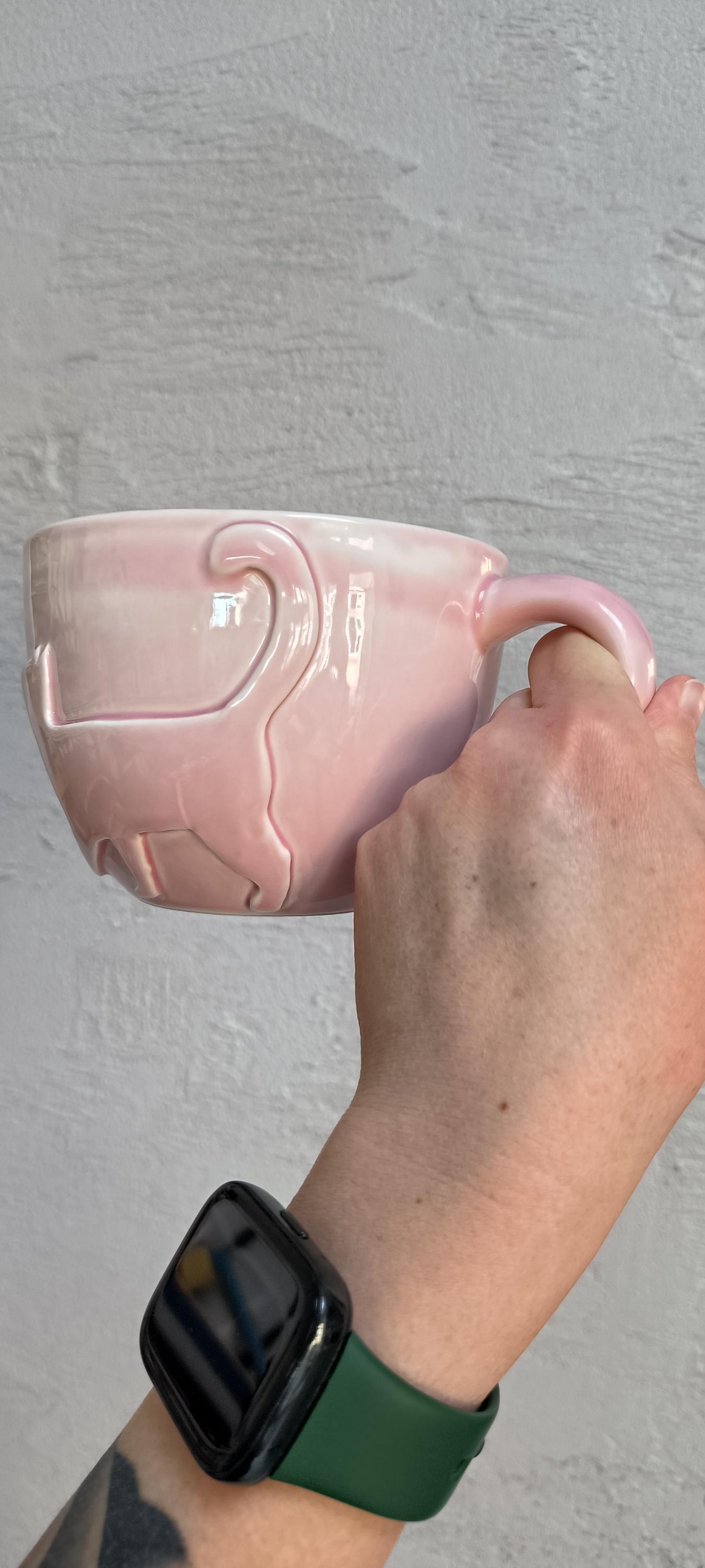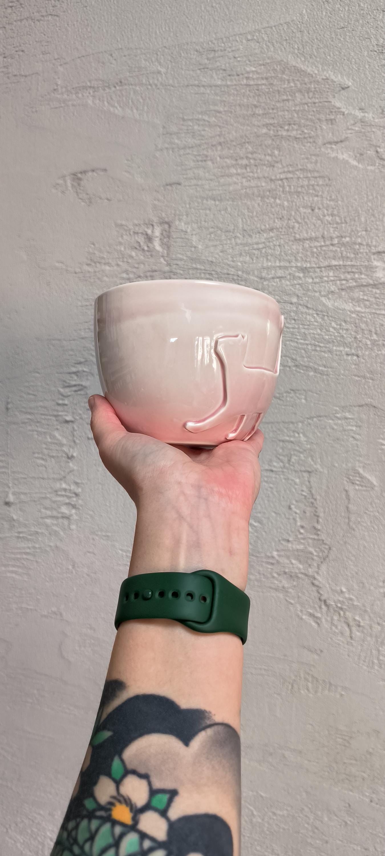 Handmade pink Ceramic Cat Mug - 600ml Glossy Coffee Mug