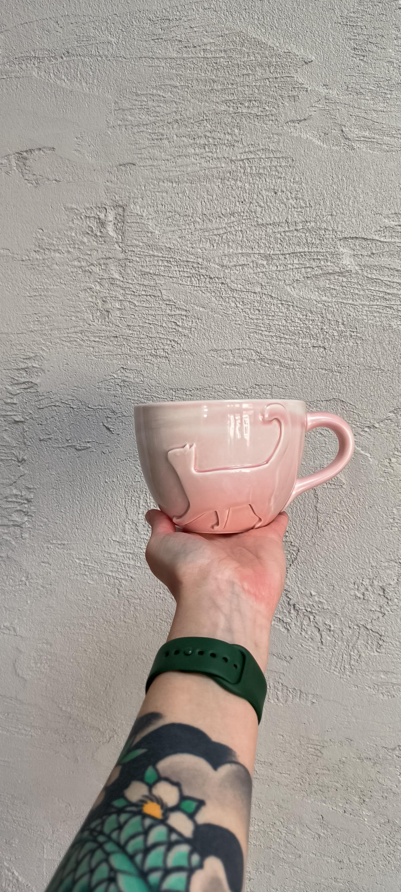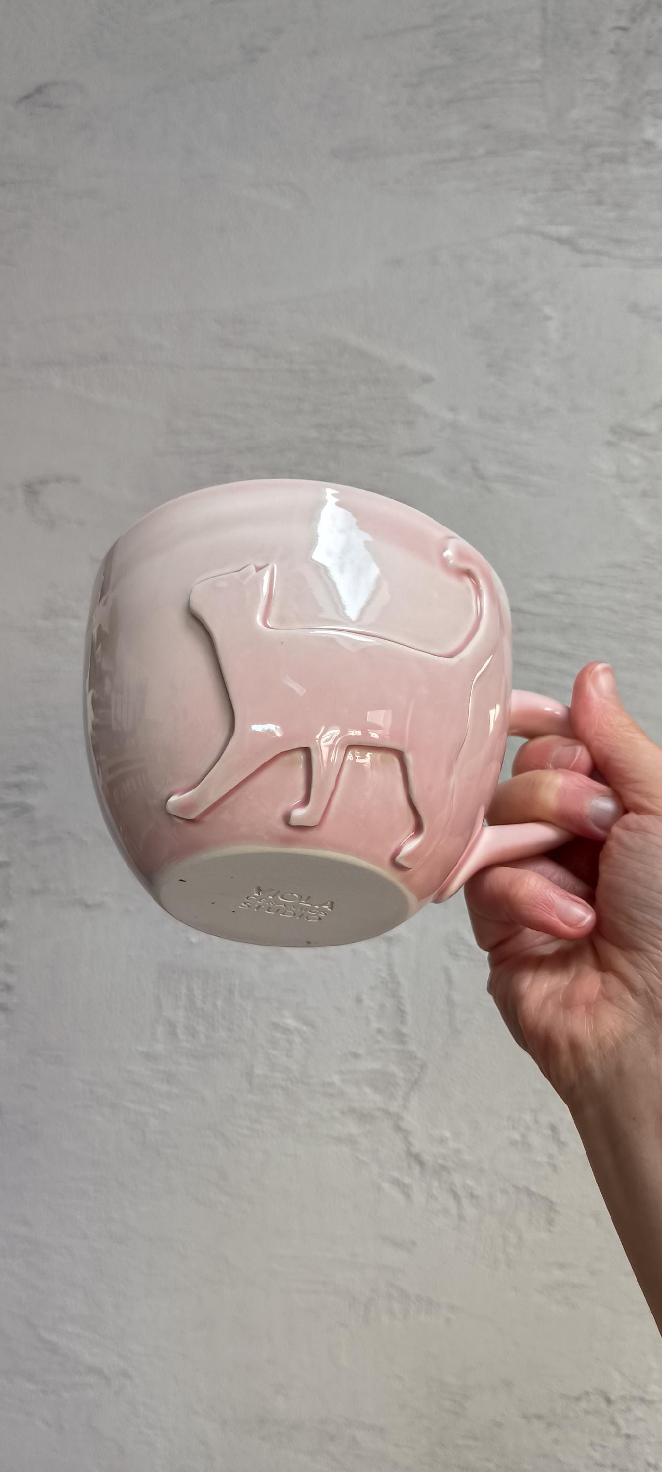 Handmade 600ml Ceramic Mug with Cat Design — Pink Glossy Glaze