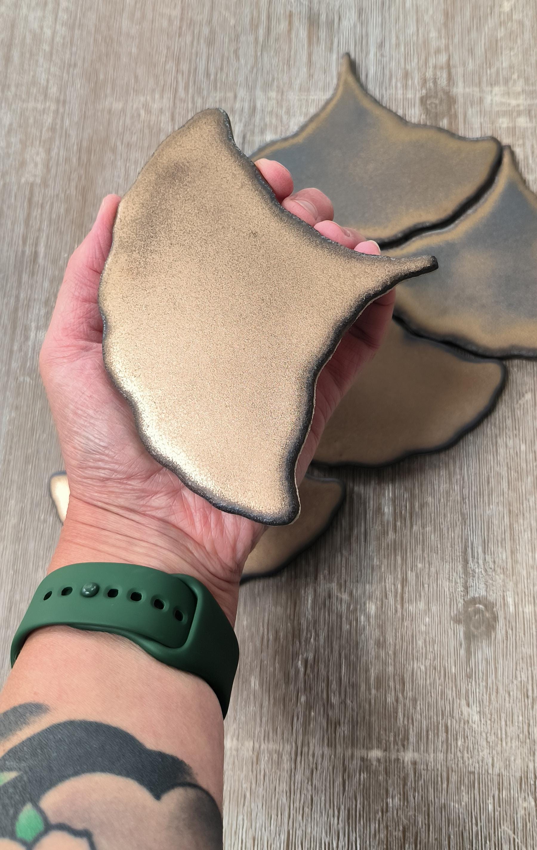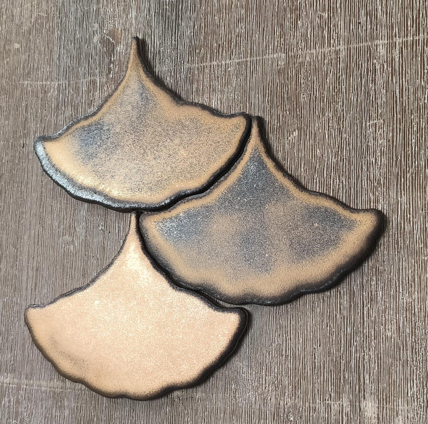 These handmade ceramic tiles are shaped in the form of a Ginkgo Biloba leaf, bringing a natural, sculptural element into your space. Each tile is individually crafted and glazed in the studio, creating subtle variation and a beautifully organic surface once installed.